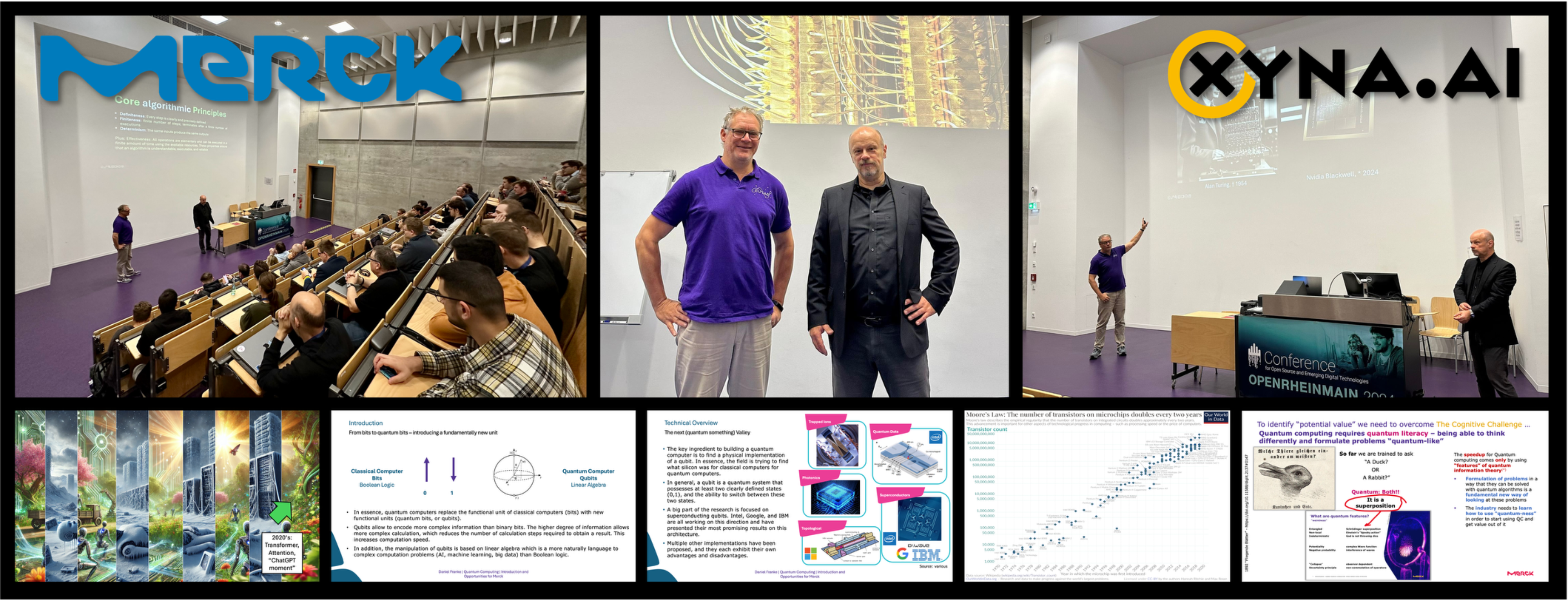 In der Keynote zur Konferenzeröffnung „AI vs. Quantum Computing” hat Alexander (xyna.AI) mit Dr. Thomas Ehmer aus dem Bereich Healthcare Digital Innovation der Merck AG in einem dialektischen Dialog die beiden doch sehr unterschiedlichen Konzepte für Future Computing gegenübergestellt.