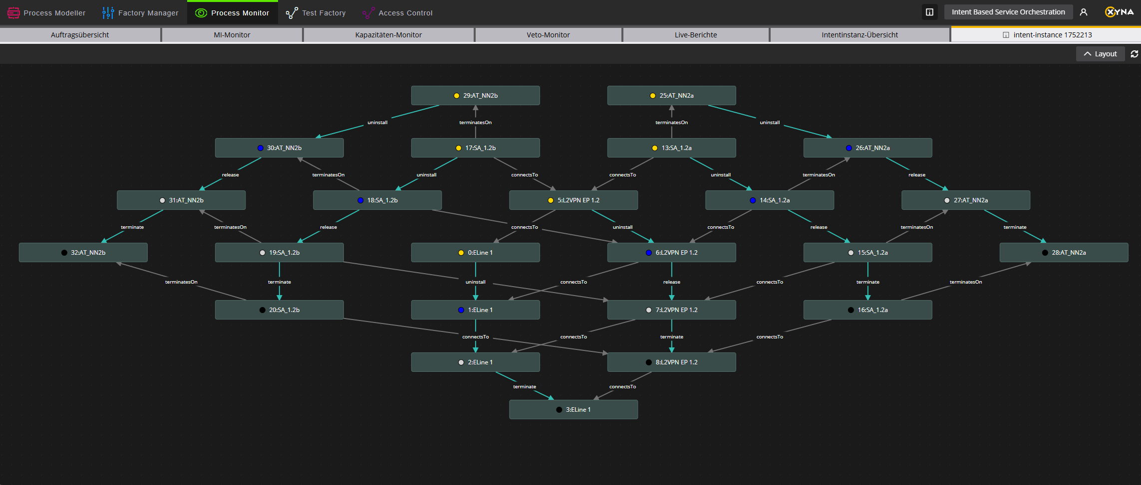 Inhaltlich bringen wir einige Impressionen des neuesten Xyna-Features mit: die Visualisierung von Execution Graphs für Intent-basierte Orchestrierungsprozesse.