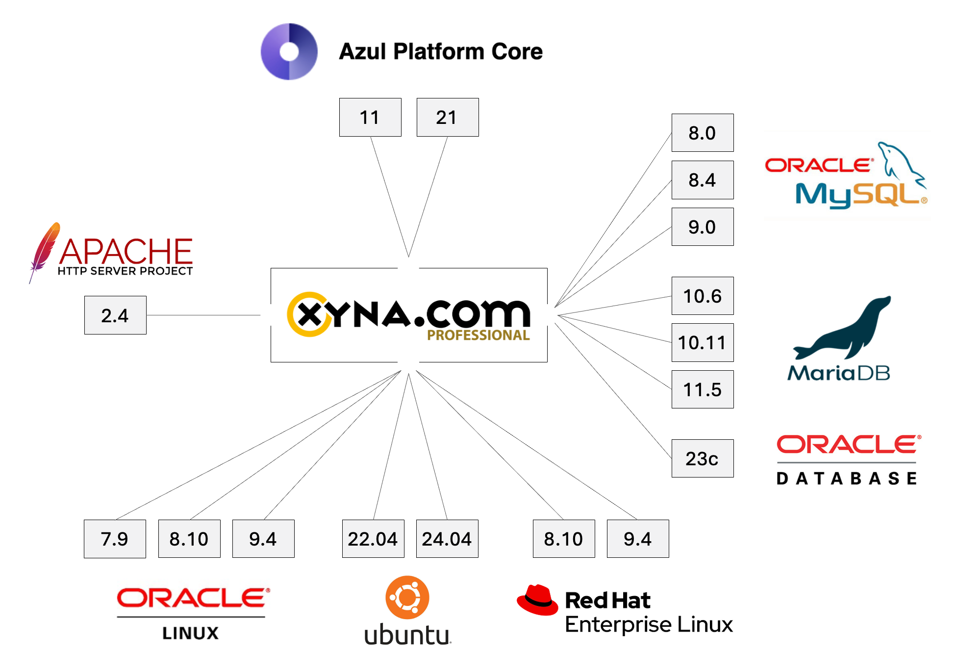 Over time, Xyna's Supported Base is continuously updated. Driven by technical developments and new releases from manufacturers, as well as new requirements from our customers.