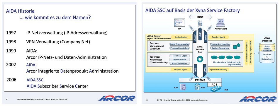 Our partnership with Vodafone has thus existed for an almost infinitely long time, which makes us proud and grateful. At the first Xyna conference in 2006, Armin Lotz reported on the beginnings of the collaboration, from the first IP address database to the OSS suite of AIDA systems: