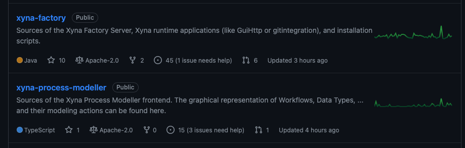 If you visit the Xyna community on GitHub, you will notice that our repositories are actively used, updated and further developed there: