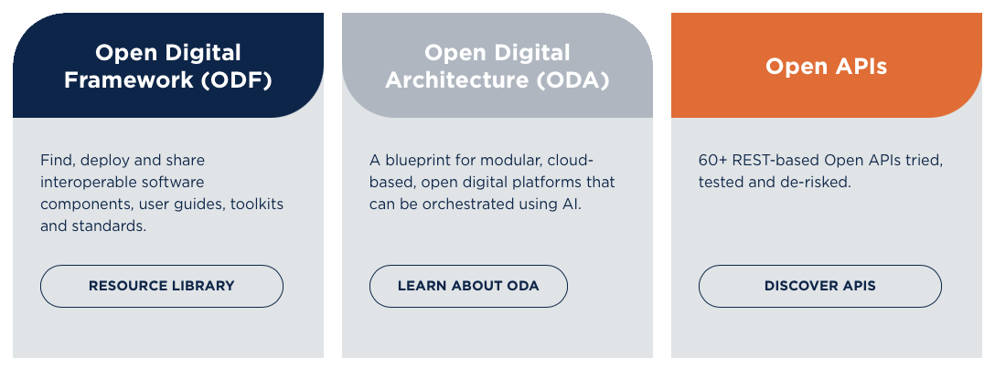 In addition to the Shared Information Data (SID) and enhanced Telecom Operations Map (eTOM) frameworks, which have existed for many years and have been updated and adapted time and again, the triumvirate of ODF, ODA and, in particular, Open APIs have played a leading role in recent years. And ultimately also in our projects with Xyna Factory.