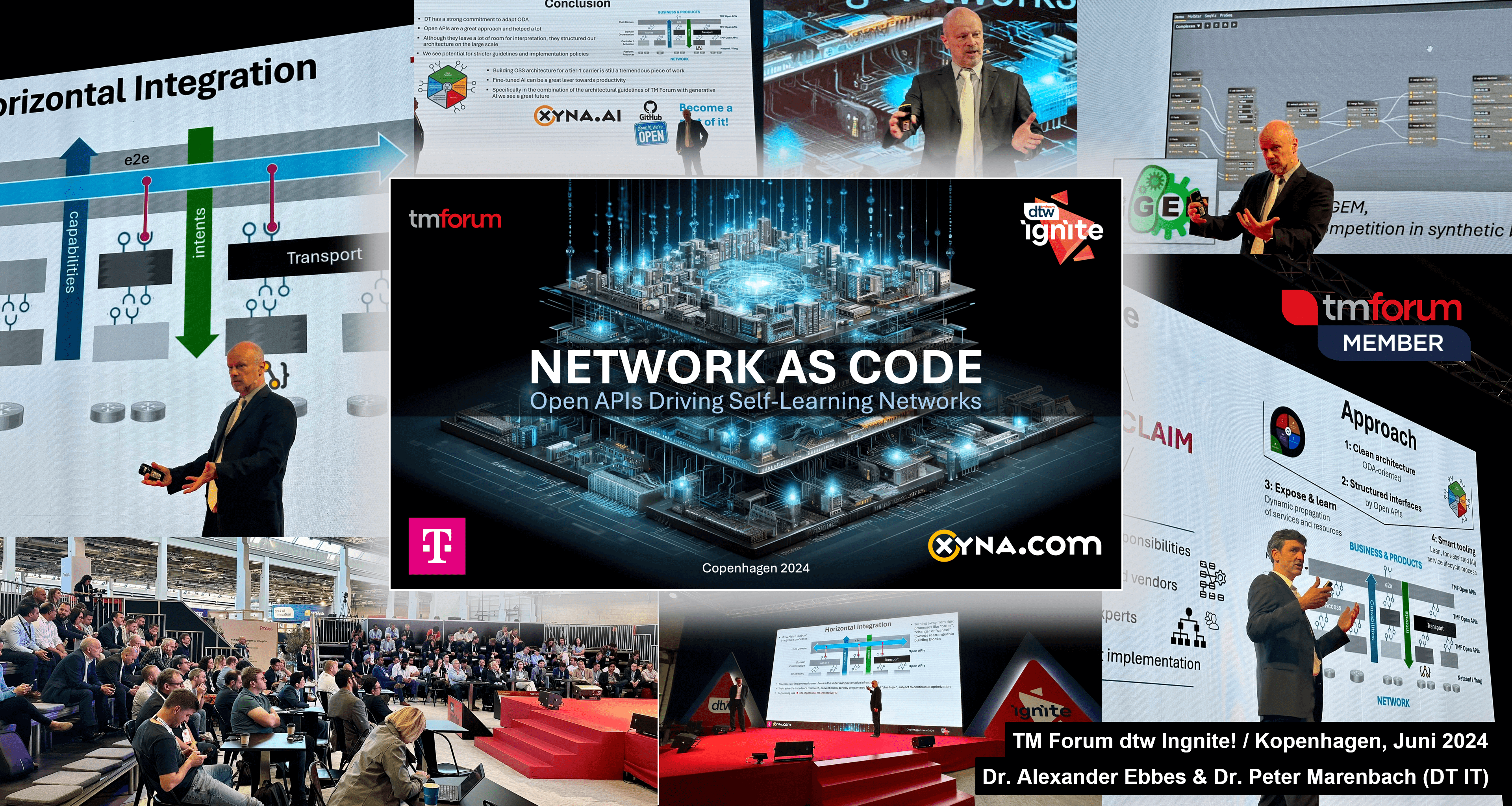 At this year's TM Forum DTW - Ignite in Copenhagen, our Xyna Factory team was once again prominently represented. A highlight was the joint session "NETWORK AS CODE" by our CTO Dr. Alexander Ebbes and Dr. Peter Marenbach from our reference customer Deutsche Telekom. The session drew an enthusiastic audience and delved into the challenges of vertical and horizontal integration. It focused on the development of decoupled (multi) service modules in an ODA-oriented system landscape and the solution approaches using an open API-compliant automation platform like Xyna Factory, powered by our AI-driven mapping and streamlining capabilities.